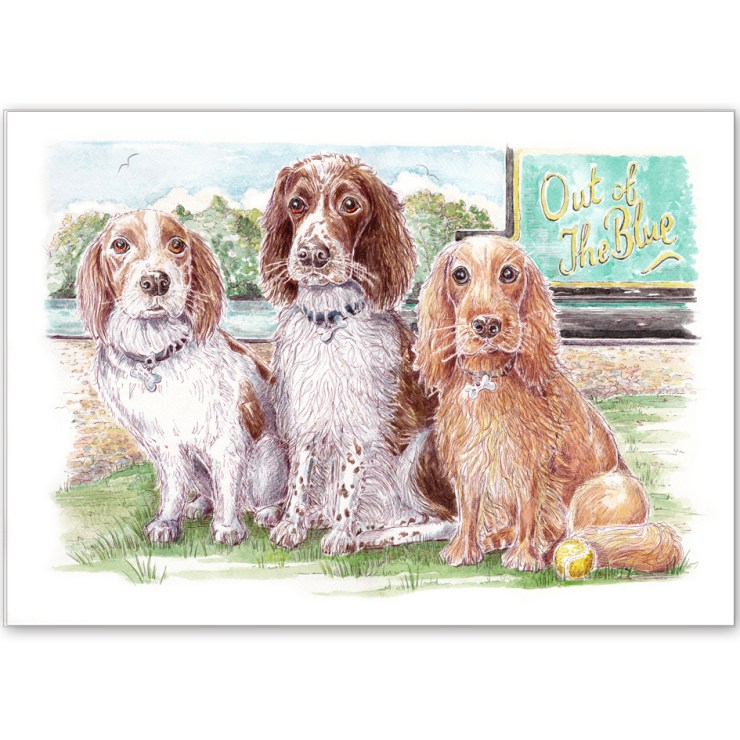 My latest finished commission, finished in the first week of August is a lovely example of a multiple dog portrait. The painting shows Bonnee, an eleven year old working springer spaniel, Bella, a three year old show springer spaniel, and Bentley a one year old show Cocker spaniel.