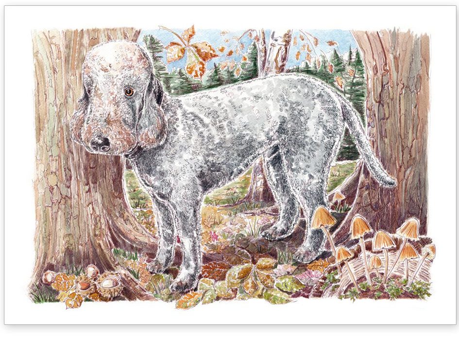 Larry is a very large male Bedlington Terrier with a big character to match! His owners requested that I painted him in a woodland scene as this is his favourite place to walk. He thoroughly enjoys snuffling through all the dry leaves and enjoying all the interesting smells!