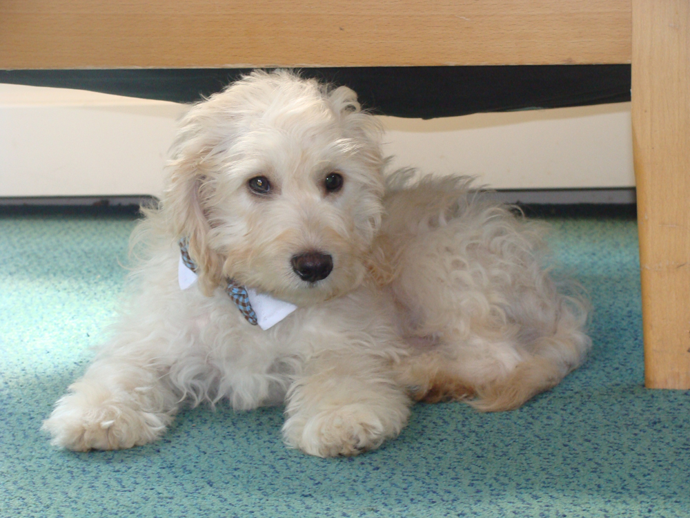 Boris was only a puppy when I painted this picture of him. This lovely little cockerpoo belongs to a friend and was a very shy little dog, but I was able to take some lovely photos of him to work from. Here he is shown with all his favourite toys and cuddly cushion.