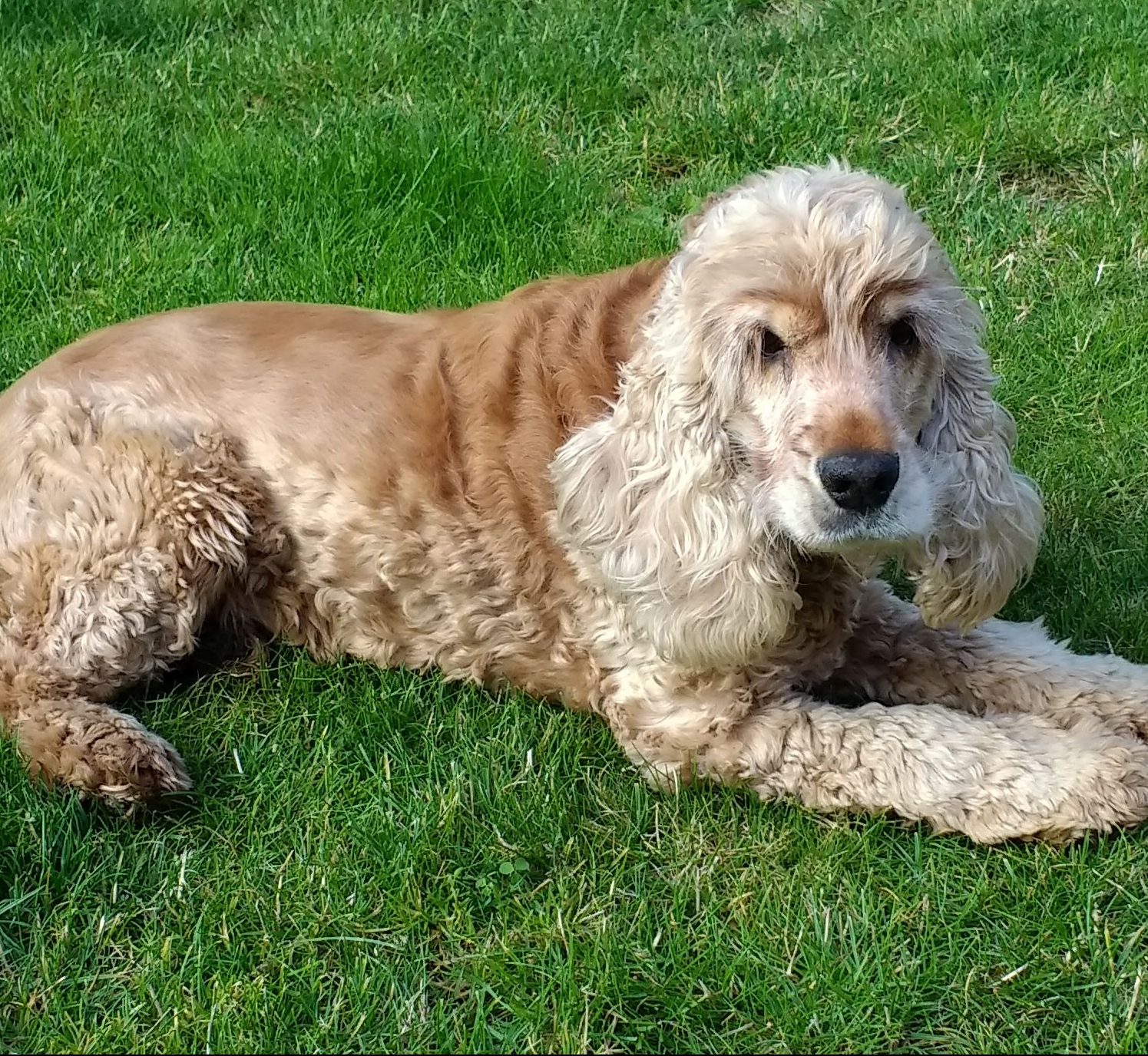 Nelson was a second commission by the owners of Saffy the golden cocker spaniel. They bought this painting as a family Christmas present. Nelson is quite a character who loves playing in the garden with his favourite rubber burger! This of course had to be in the painting too!